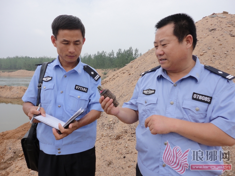 沂南县大庄镇一男子在自家老宅挖地基时,挖出来一枚手雷让他惊出一身冷汗,报警后,民警及时将其销毁消除隐患。7月19日下午3时许,沂南县公安局大庄派出所接群众报警称:辖区某村民刘某挖地基时挖出一枚手雷。民警火速赶往现场,疏散围观群众,设置警戒线封锁现场并同时报告治安大队前来处置。经专家鉴定,此手雷为解放战争时期遗留的手雷,虽历经多年锈蚀,但仍封存完好,具有一定杀伤力。民警将手雷放置到安全地点进行引爆,成功将该手雷销毁,及时消除了一起治安隐患。
