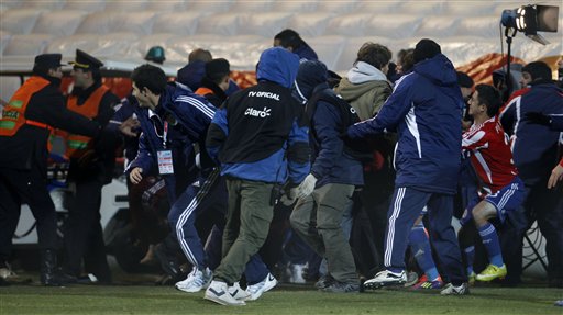 在美洲杯半决赛巴拉圭点球战胜委内瑞拉晋级决赛后,球场出现了较大规模的骚乱,球员、球迷、防暴警察都参与其中。