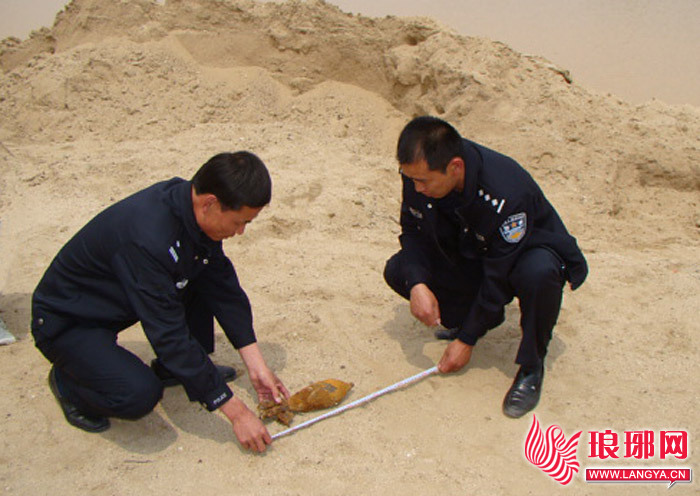 4月23日中午12时许,沂南县公安局青驼派出所接到群众报警称,辖区大刘家庄村村民赵某在耕地时发现了一枚炮弹。接警后,青驼镇派出所立即将这一情况汇报县局治安大队,同时组织民警赶赴现场,迅速实施警戒,并对现场进行清理。经专家鉴定,该炮弹系战争年代遗留下来的迫击炮弹,虽然表层已经生锈,但引信保存完好,仍具有很强的杀伤力。当日下午2时许,在蒙河河滩空旷无人处,民警利用引爆法将炮弹成功销毁,及时消除了安全隐患。