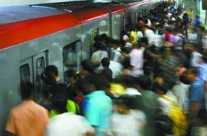 四惠站的八通线换乘处,每天高峰期间,蜂拥而上涌进车厢是常见的情景。本报资料图片 韩萌 摄