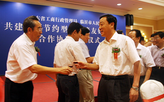 我市是省委、省政府确定的全省资源节约型和环境友好型社会(以下简称“两型社会”)建设改革试点城市。为加快工商行政管理职能改革,逐步建立起适应“两型社会”要求的工商行政管理服务新体制,推进临沂经济发展方式转变,加快建设大美临沂,经山东省工商行政管理局与临沂市人民政府共同商定,达成合作共建协议。