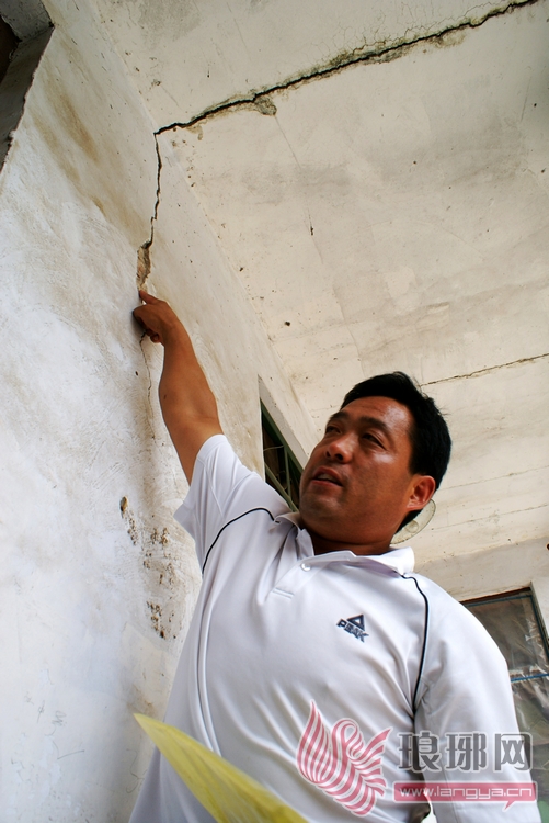 随后,他带着记者来到与他家只有一路之隔的大哥家。那次“地震”过后,他大哥家的房子也出现了裂缝。