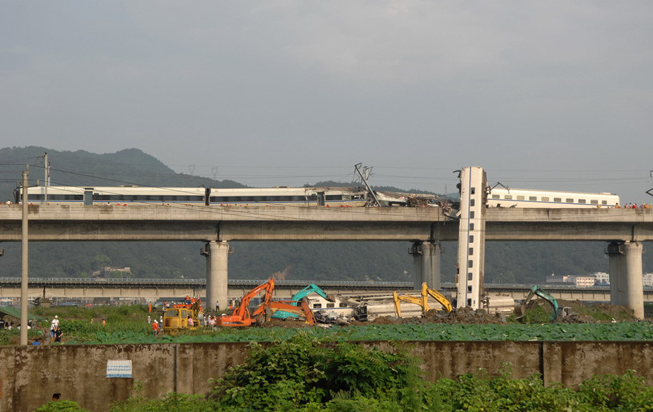 据浙江省政府最新调查结果,7月23日20时27分,北京至福州的D301次列车行驶至温州市双屿路段时,与杭州开往福州的D3115次列车追尾,造成D301次列车4节车厢从高架桥上掉落。目前,两列动车未掉落车厢的乘客都已转移至温州市区。
