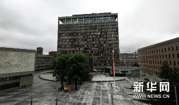 这是7月27日拍摄的挪威奥斯陆政府办公区。当日,奥斯陆爆炸区部分政府部门恢复办公,挪威改革与宗教大臣兼北欧合作大臣里格莫尔·奥斯鲁德成为首个返回爆炸区原办公室办公的部长。新华社记者王庆钦摄
