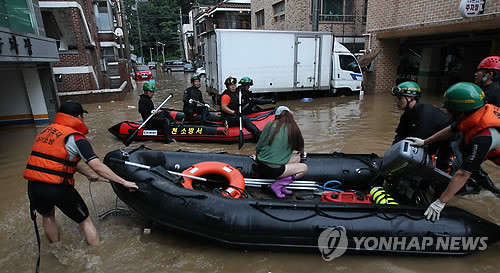 韩遭遇百年一遇强降雨 至少36死数十人失踪(图)