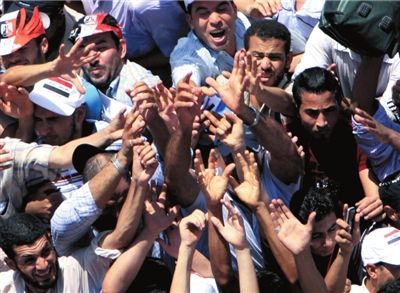 7月29日,在埃及开罗,示威者伸手领取免费的水。图/人民图片