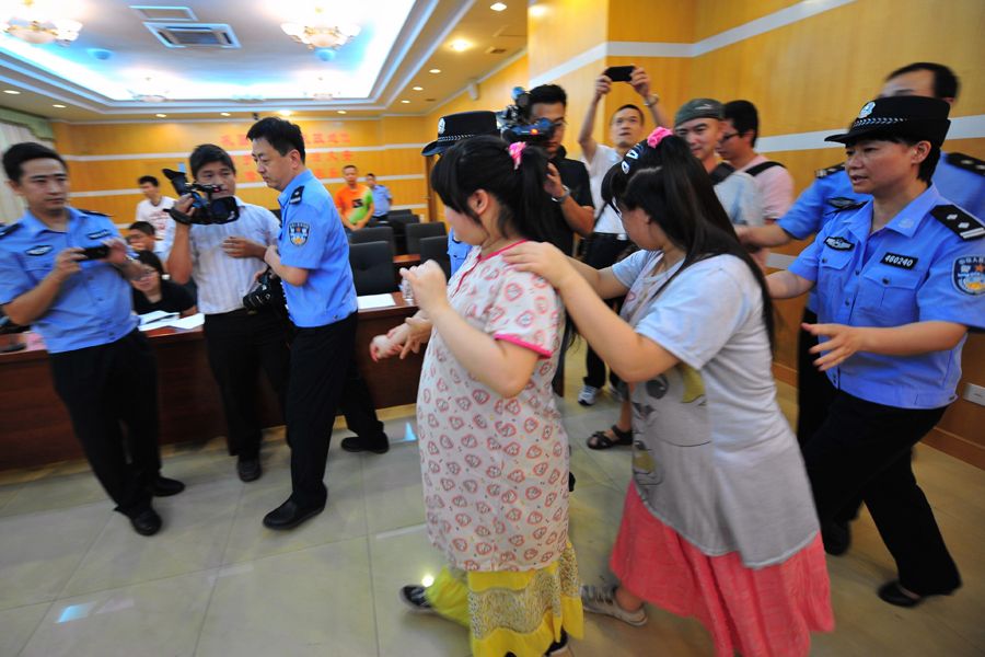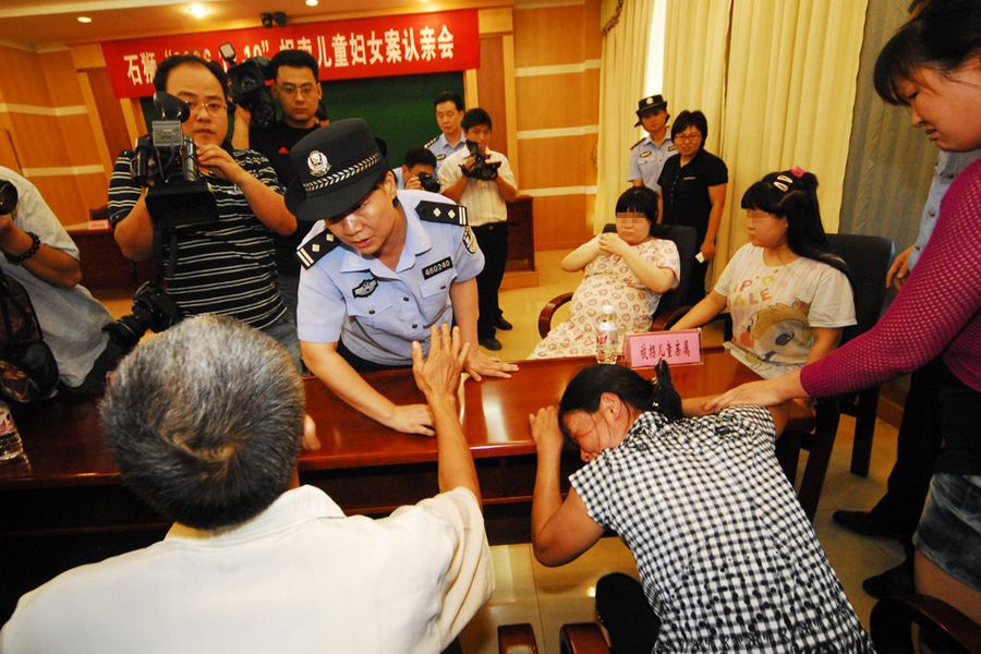 7月31日,被拐5年的四川籍双胞胎姐妹小美和小甜(怀孕者)(均为化名)在福建石狮的认亲会上。当日,福建省石狮市公安局举行“2006·12·10”拐卖妇女儿童案认亲会,两名被拐孪生姐妹小美、小甜时隔5年后与父母相见。认亲现场母亲捶胸痛哭,父亲孙义直表示无法接受女儿现状,不想认领,并向警方提出精神损失等索赔。