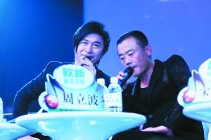 黄舒骏和周立波在“金钟奖”节目录制现场点评参赛选手。
