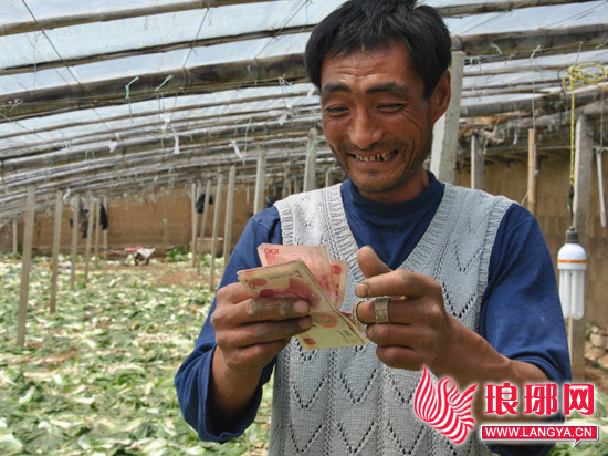 时间:27日上午10点 收到购菜款菜农乐开颜