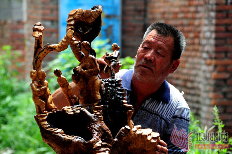 临沂郯城老兵制作根雕“沂蒙六姐妹”