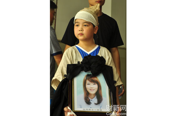 8月1日上午,张秀燕8岁的大儿子为母送灵。张秀燕母子三人一起乘车,5岁的弟弟受伤住院还不知道母亲死讯,懂事的哥哥还瞒着他:妈妈在别的医院。