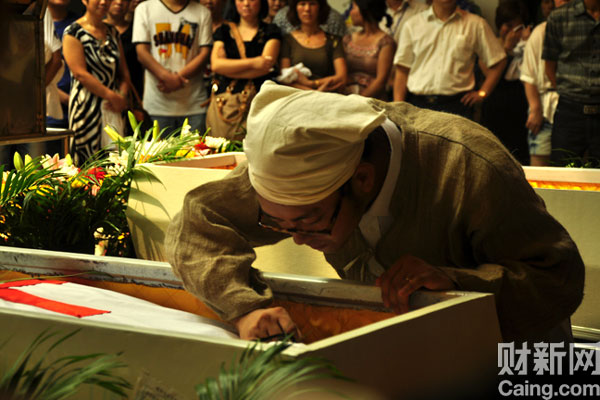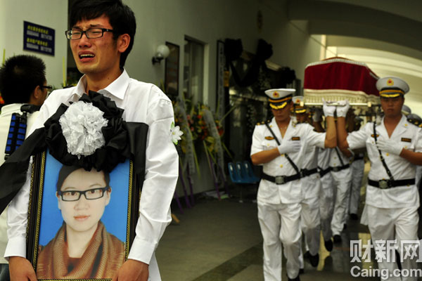 8月1日上午,怀孕7个月的陈碧在“7·23”事故中遇难,火化前,夫杨峰为其简单清理遗容。