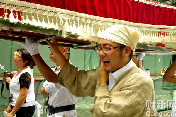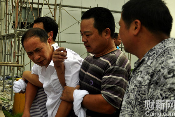 8月1日上午,陈碧的丈夫杨峰扶棺痛哭。
