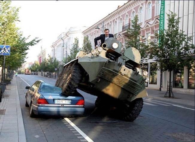 立陶宛首都维尔纽斯市市长佐卡斯日前驾驶一辆战车碾过一辆违章停车的奔驰车。他声称通过此举向违章停车者发出严正信息,表明当局将对非法停车者将持零容忍态度。他说:“对那些自诩可凌驾于法律之上的人有何措施?貌似坦克是最好的解决方法。”