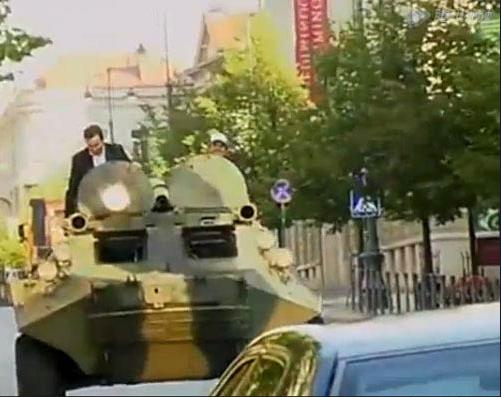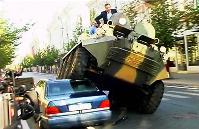 立陶宛首都市长驾装甲车碾违停豪车(图)
