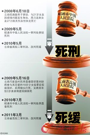 云南两起改判死缓案对比。 EG365/CFP供图