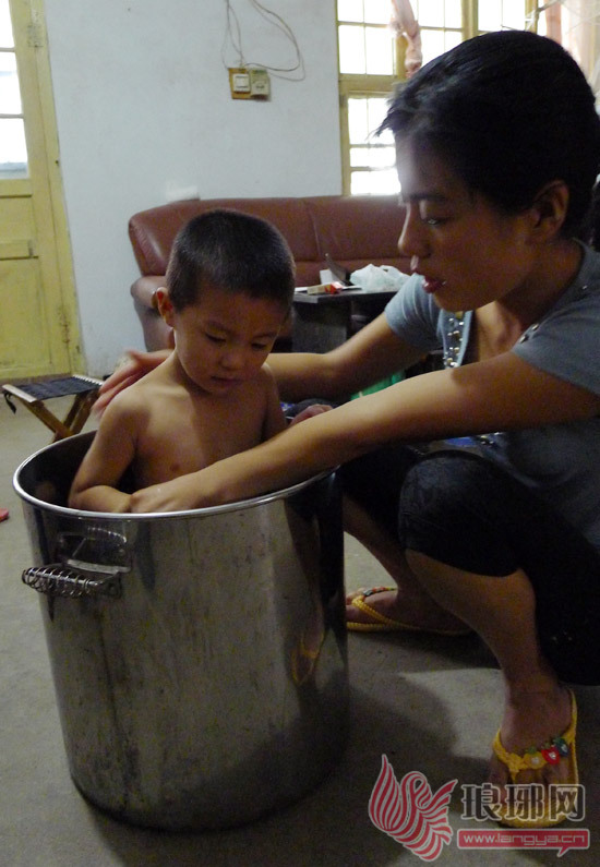 去年,沂水一家中医门诊给孩子出了偏方,让孩子每天吃中药,并熬出中药泡澡。那个医生告诉郑来梅肯定能治好。郑来梅信以为真,每天给孩子熬中药,一天让成成6个小时呆在水中,一年下来花去两万多元,但并未见好转。