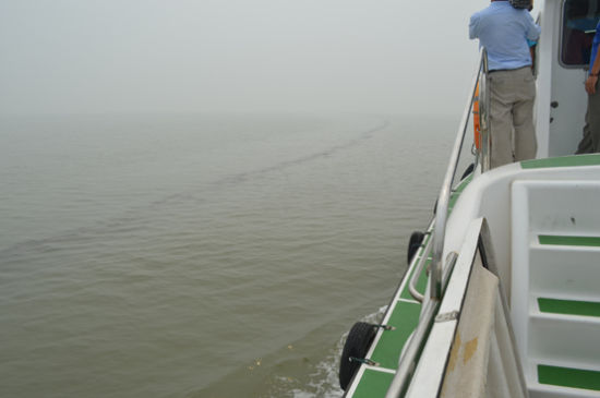 天津蔡家堡海域发现不明油污带 绵延5海里(图)