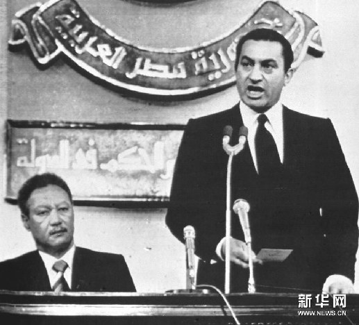这是穆巴拉克(右)于1981年10月14日在埃及人民议会上宣誓就任总统的资料照片。新华社发