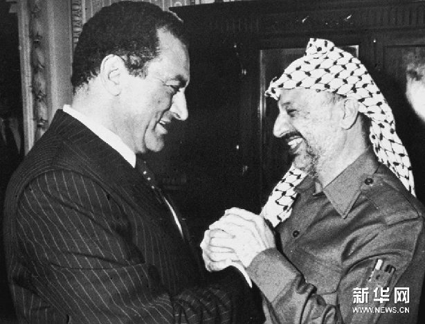 这是穆巴拉克(左)于1985年11月5日在开罗欢迎巴解执委会主席阿拉法特的资料照片。新华社发