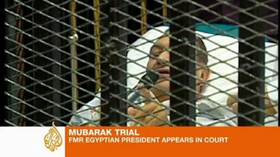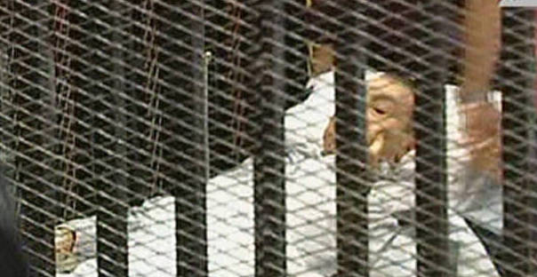 电视台的画面显示,穆巴拉克3日躺在铁笼子里的病床上出庭受审。