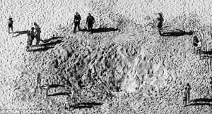 米纳被埋进巨大的沙坑