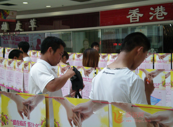 虽然今天天气炎热,但临沂人寻觅姻缘的热度却不减。临沂微博首届相亲大会在华丰国际商贸城举行,临沂微博、临沂都市网等多家网络媒体和商家共同举办。现场互动活动不断,观众参与热情高涨。大量单身市民报名填写表格,寻找另一半幸福。