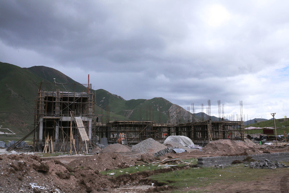 这是杂多县妇幼保健院在建的工地。该项目与治多县妇幼保健院在中国红十字会网上公布的建筑面积和造价引起网友质疑(8月5日摄)。7月31日,中国红十字总会信息发布平台公布了玉树捐建项目的资金情况。随后,一些网友发现,在公布的账目中,不仅民房与卫生院建筑成本相差过大,而且卫生院之间建设成本也相差悬殊。这一情况立刻引发网络上一片质疑声。对此,新华社“中国网事”记者专程赶赴青海玉树藏族自治州对事件进行调查核实。