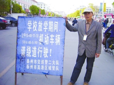 4月27日下午4点50分,记者在事发现场发现,金港路南北200米的路段被实行临时管制。路段的一头竖立着一块站牌,牌子上写着:“学校放学期间,上午10:40至11:10,下午4:40至5:30,机动车辆请绕道行驶。”落款是“泰州市交巡警二大队和高港区城管队”。记者了解到,被管制路段的中间是当地口岸中心小学,实行交通管制是有关部门出于对学生安全的考虑。
