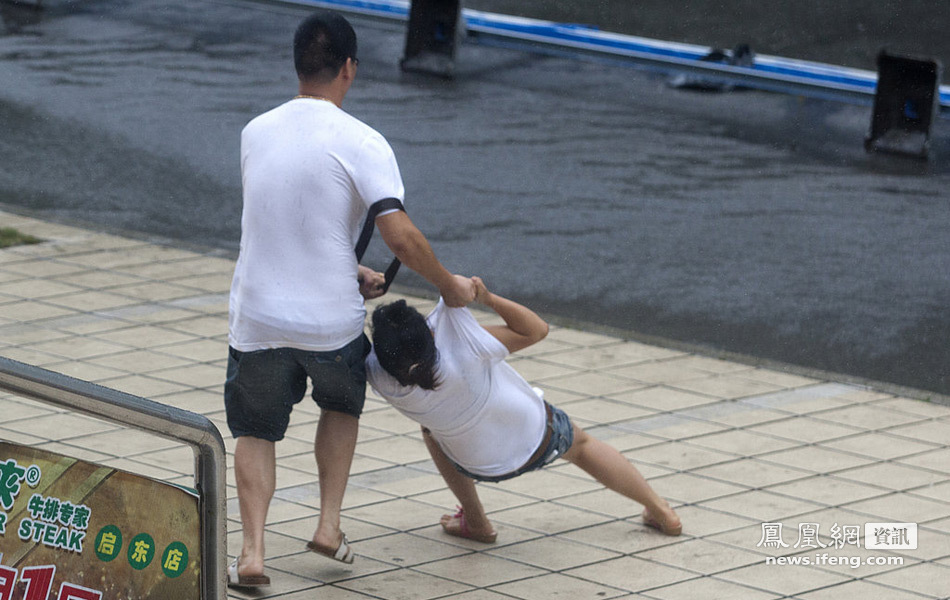 【台风梅花来袭】“梅花”来袭 街头众生狼狈不堪