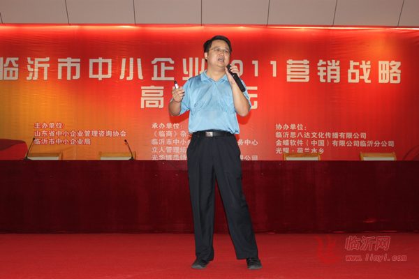8月8日,临沂市中小企业2011营销战略高峰论坛在临沂大学沂蒙大讲堂圆满举行。此次论坛的主题是“跳出低谷----经济转型期的企业营销战略”。目的是更好地贯彻落实临沂市人民政府关于“大力开展2011市场营销年活动”的精神,推动我市名优特产品营销创新,促进企业在后金融危机时代又快又好发展。