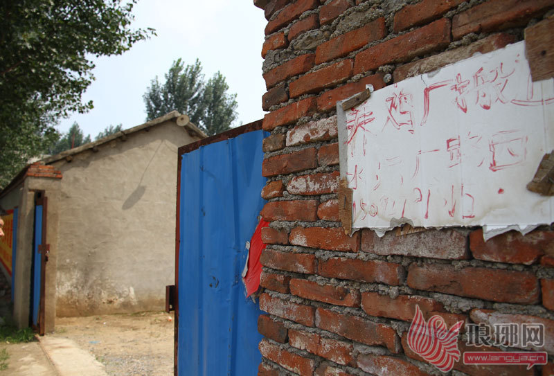 在厂房前,一块养鸡场搬迁的牌子挂在醒目处。厂房