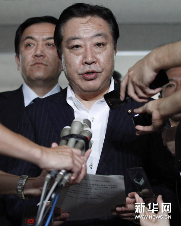 8月8日,日本财务大臣野田佳彦(中)在东京就会议内容接受媒体采访。当天,七国集团财长和央行行长举行电话会议,并在亚洲市场开盘前发表联合声明,表示将采取一切必要措施来确保金融稳定和经济增长。新华社/路透