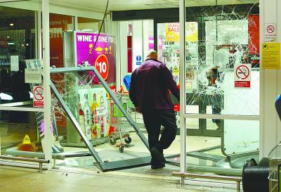 一些示威者围攻警察期间,另有不少示威者砸碎已打烊商铺的玻璃橱窗,爬入商铺内劫掠。英国当地媒体报道,至少数十家商铺遭人抢劫。一些目击者报告,看见示威者推着满载商品的手推车奔离现场。