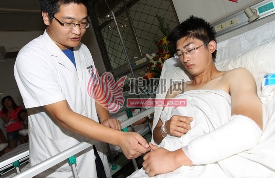 10日,该院手足显外科医生告诉记者,小倪左臂受了两处刀伤,最深的一处在左前臂外侧,深达关节囊,如果再深一点,就会伤及神经。随后,医生对小倪的左臂又进行了检查,弯手指,抬手臂,每一个动作产生的痛感,都让小倪眉头紧皱。检查过后,医生表示,就目前的情况看,小倪身体没有什么大碍,两周后手臂就可以拆线。