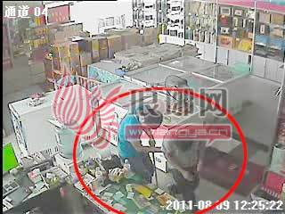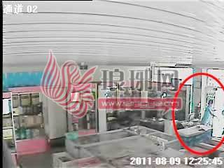 葛先生在市区东岳庙街与北园路交会处以南100米附近经营了一家销售高档烟酒和海鲜的店铺。10日,葛先生调出了9日中午店内的监控录像。