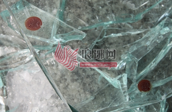 玻璃碎片上洒满了倪永涛的斑斑血迹。