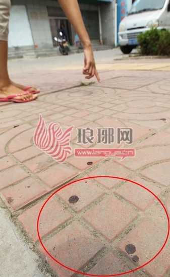 人行道上留下了倪永涛追赶嫌疑人时流下的血迹。