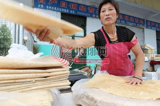 煎饼摊是一家人的收入来源,倪永涛受伤后,他的母亲边看摊边期盼儿子尽快出院。