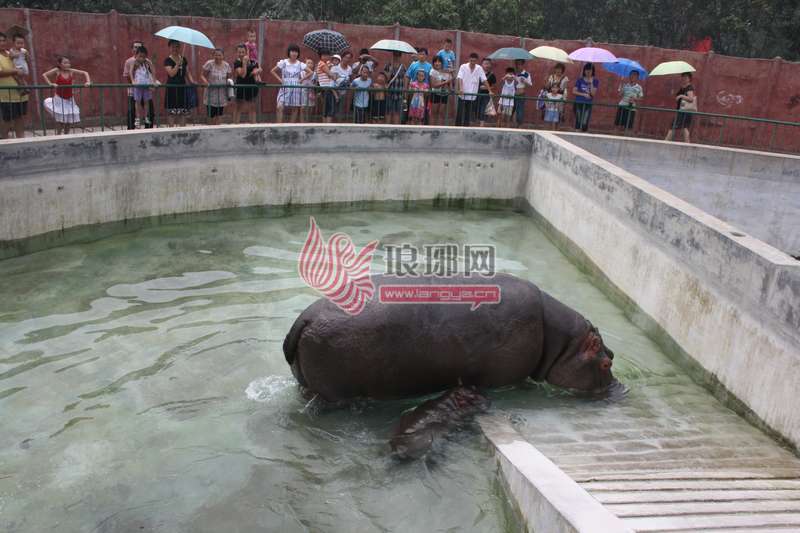 10日上午天气特别闷热,但河马馆里却人头攒动。冒着酷暑的市民们都抱着一个目的,就是看
