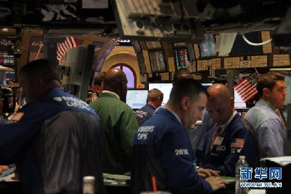 8月8日,交易员在美国纽约证券交易所工作。当日,受标普下调美国主权信用评级影响,纽约股市三大股指全线大幅下挫,道琼斯指数下跌超过600点,失守11000点关口,标准普尔500指数和纳斯达克综合指数跌幅均超6%。新华社记者王成云摄