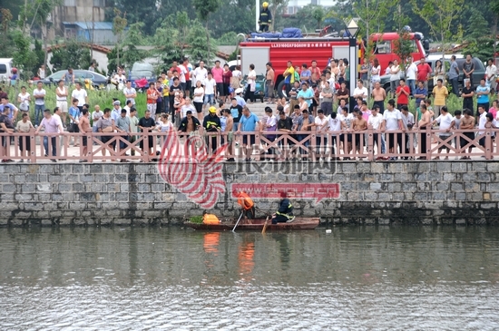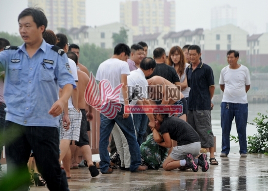 一位在现场的女士说,大约在15时左右,她远远地看见一辆车开到附近广场,不多久一名年轻男子打开车门朝着河边走去,一名女子接着就抱着小孩下车追去。而当她来到这处河边广场后,这位年轻女子抱着小孩一边哭一边着急地喊着:“快报警!跳河了!”附近有市民拨打电话后不久,消防官兵和警察就来到河边封锁现场,下河救人。该女士还说,过了一会,她就看见穿蓝色T恤衫的男子拿着绳子过来帮忙寻找。