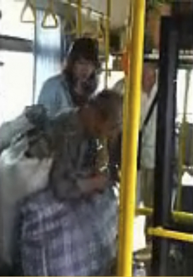 这时,公交车停车靠站了,男乘客说要叫警察来处理,并准备下车。下车时,他拉起老人一只塑料袋扔下去,但被老人护住,但由于拉扯,塑料袋被撕破,袋内的塑料瓶、纸品洒落车内、车外一地。