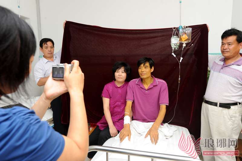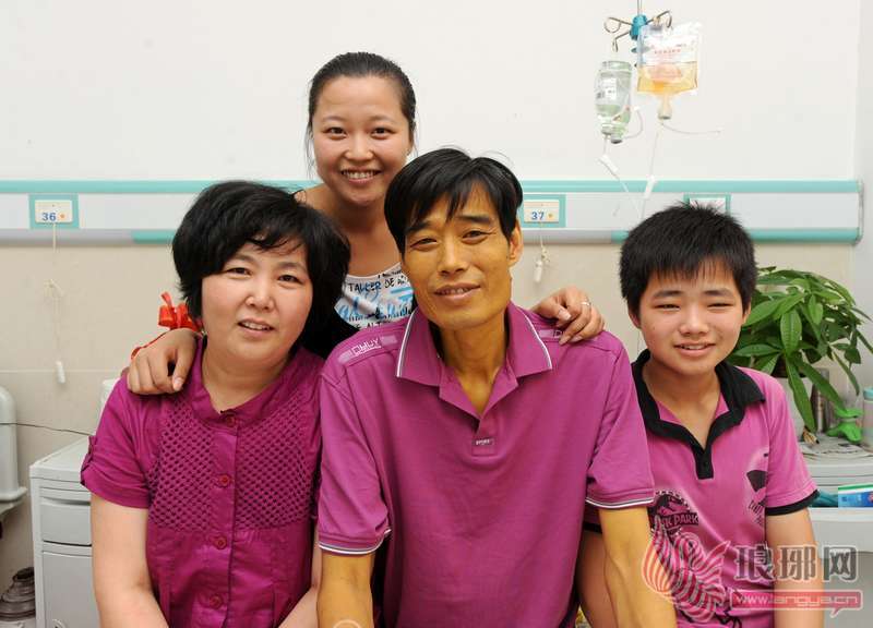 在同一个病房中,记者为这个不幸家庭拍摄了第二张全家福,但这一张画面中的每一个人都露出了笑容。