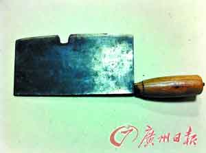 砍手照片的主要道具:带缺口的菜刀。