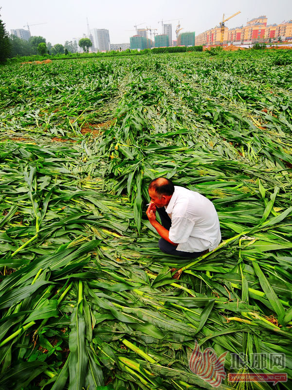 问学贵看着自家被压倒的玉米地愁得直抽烟。