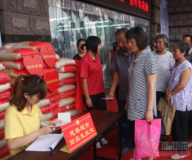 16日上午,临沂市首家市级“慈善超市”在桃源超市门前揭牌,现场向100名困难群众发放了首批爱心慈善卡,无偿领取了米、面、油等生活用品。据悉,此次将向市区困难群众家庭无偿发放价值10万元的米、面、油等生活用品,喜迎中秋佳节的到来。