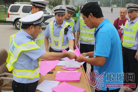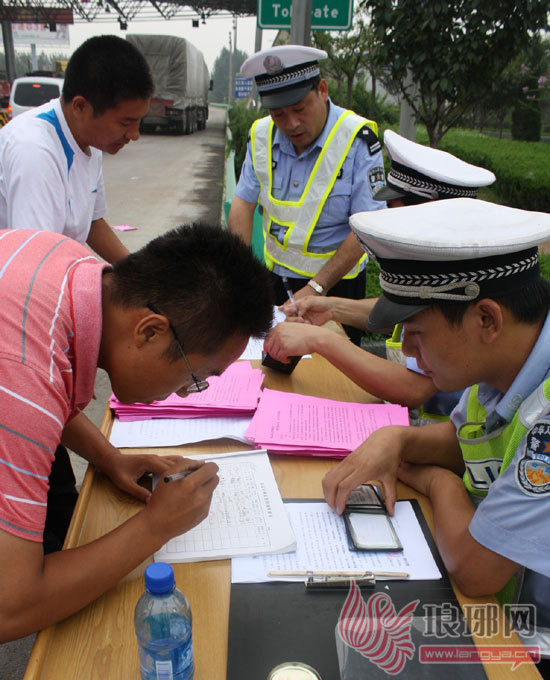 8月16日,临沂高速交警大队民警在京沪高速公路罗庄收费站给过往的每一辆客车车辆驾驶员发放有奖举报共创平安高速的监督标签和材料,并让驾驶员签订不违法装载危险物品、不超员、不疲劳驾驶等遵守交通法规承诺书。这是临沂高速交警大队在百日集中整治客运车辆交通违法行为行动中,结合辖区实际,创新交通安全管理模式,预防和减少客运车辆发生交通事故所采取的一大举措。