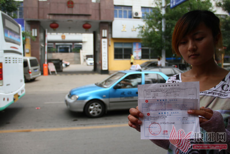 邢翠翠在法院领到银行转账单。