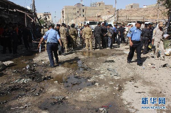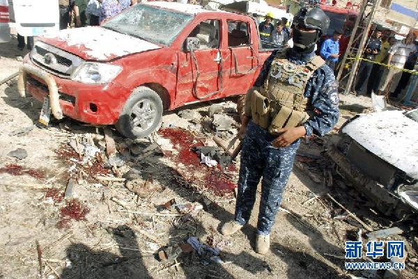 8月15日,一名警察在伊拉克库特市爆炸现场警戒。伊拉克警方说,伊瓦西特省库特市15日上午发生两起爆炸,已造成至少30人死亡,50多人受伤。库特是瓦西特省首府,距首都巴格达大约170公里,人口大约37万。新华社/路透